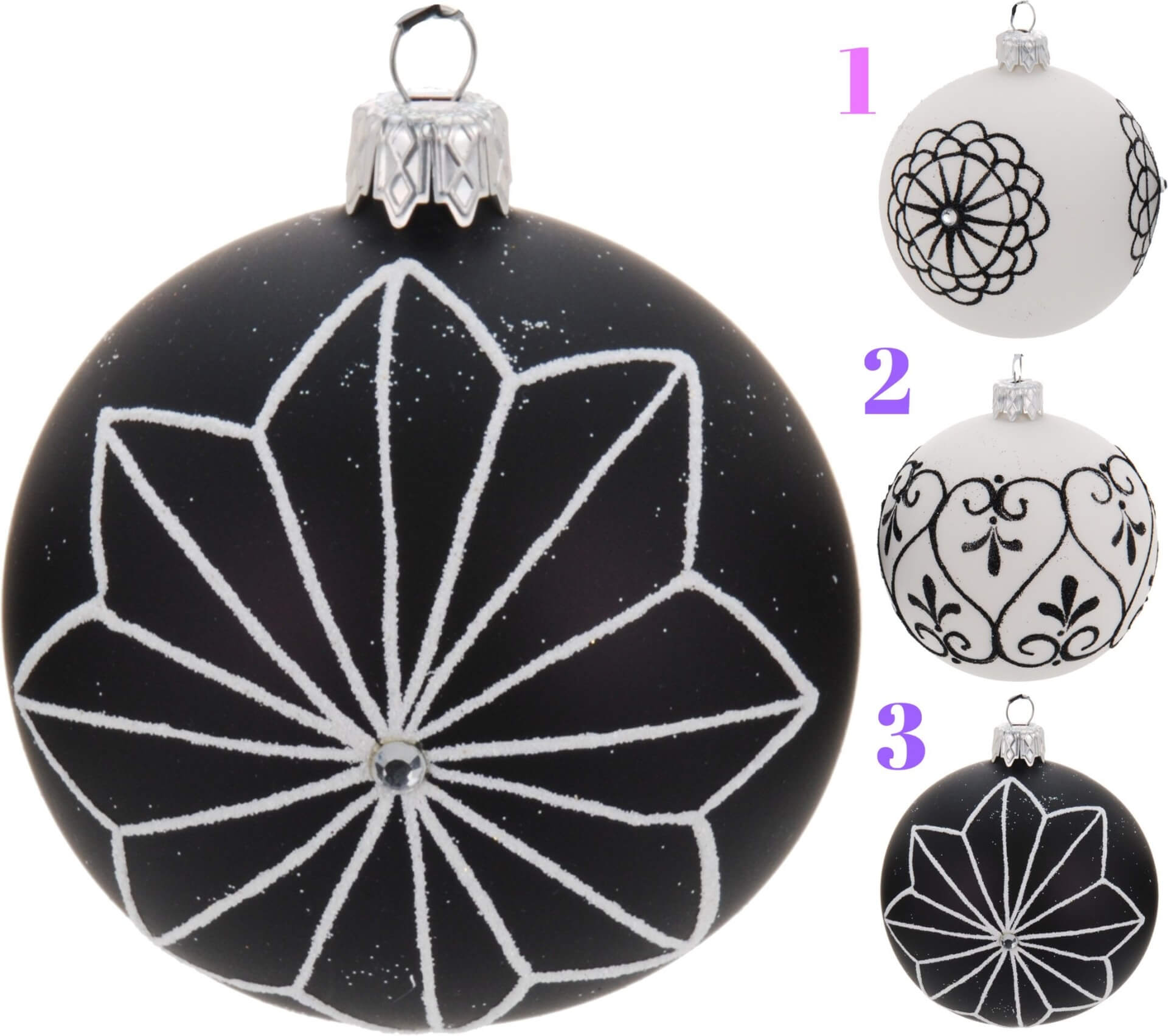 Ozdoby Bożonarodzeniowe , to najczęściej wybierane w sezonie zimowym dekoracje do domów oraz mieszkań .Ozdoby te nadają aranżacjom magii i umilają czas oczekiwania na Boże Narodzenie . W Państwa domach nie może zabraknąć naszych biało-czarnych bombek. Bombka jest szklana pomalowana farbą i ma na sobie brokatowe wzorki, Dzięki swoim neutralnym kolorom pasuje do każdego wnętrza i jest przy tym elegancka.