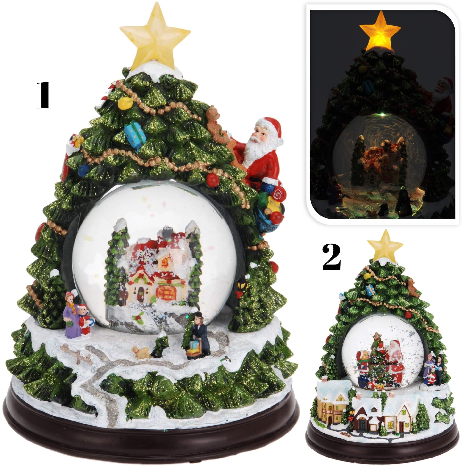 Przepiękna świąteczna dekoracja - choinka z kulą wodną w środku. Kula od góry podświetlona diodą zmieniającą kolory (czerwony, zielony, niebieski).