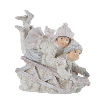 Figurka przedstawiająca dzieci zjeżdżające na sankach. Ozdoba doda wnętrzu radosnego charakteru.