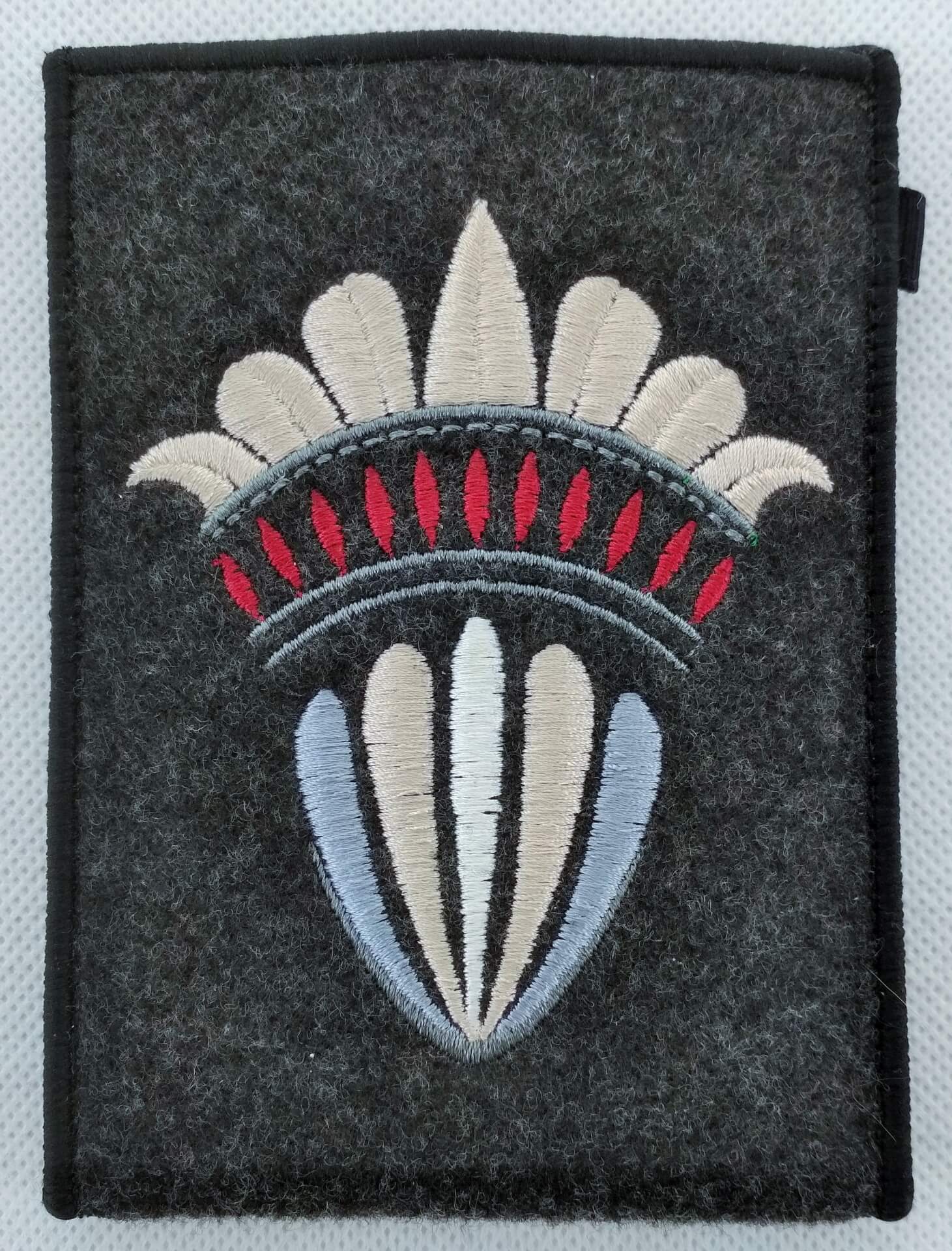 Całość obszyta jest satynową nicią, a środek wyklejony jest wzmacniającym materiałem.