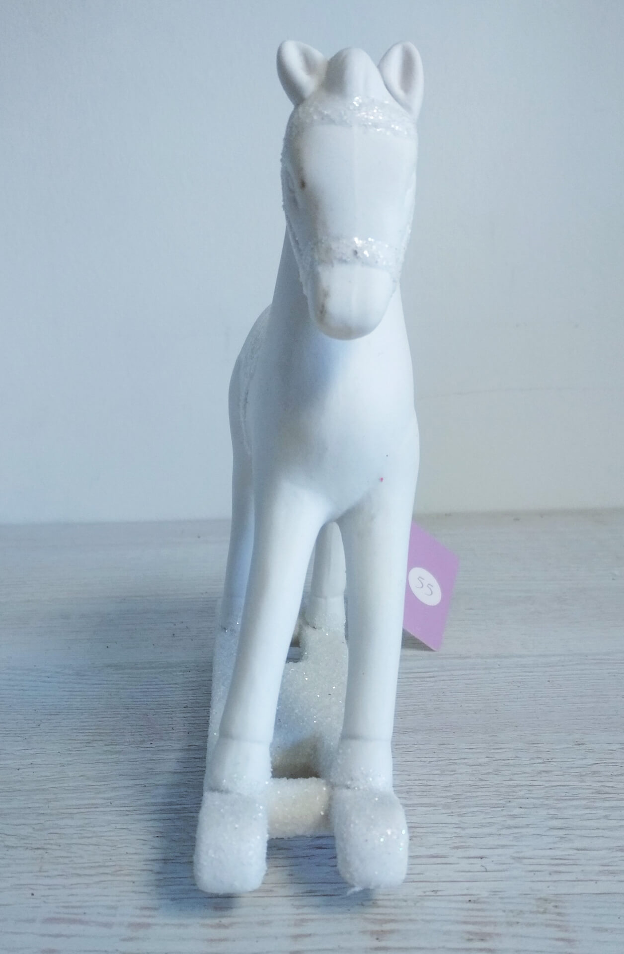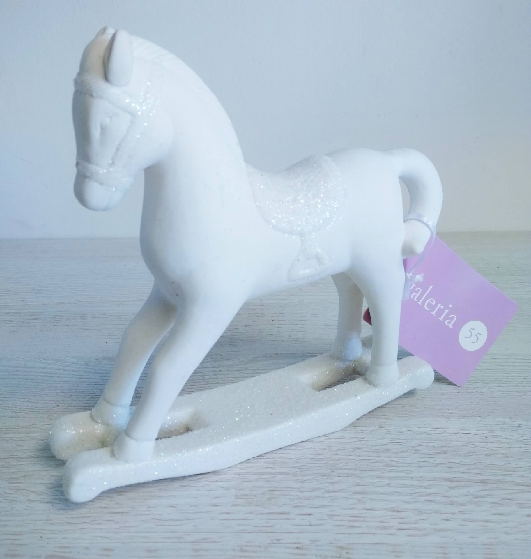 Ozdoby Bożonarodzeniowe , to najczęściej wybierane w sezonie zimowym dekoracje do domów oraz mieszkań .Ozdoby te nadają aranżacjom magii i umilają czas oczekiwania na Boże Narodzenie . W Państwa domach nie może zabraknąć przepięknej figurki białego konika na biegunach. Konik ceramiczny, biały z delikatnymi brokatowymi zdobieniami.
