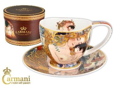 Porcelanowa filiżanka australijskiej marki CARMANI z reprodukcją obrazu Gustava Klimta. Dzięki eleganckiemu opakowaniu filiżanka idealnie nadaje się na prezent.