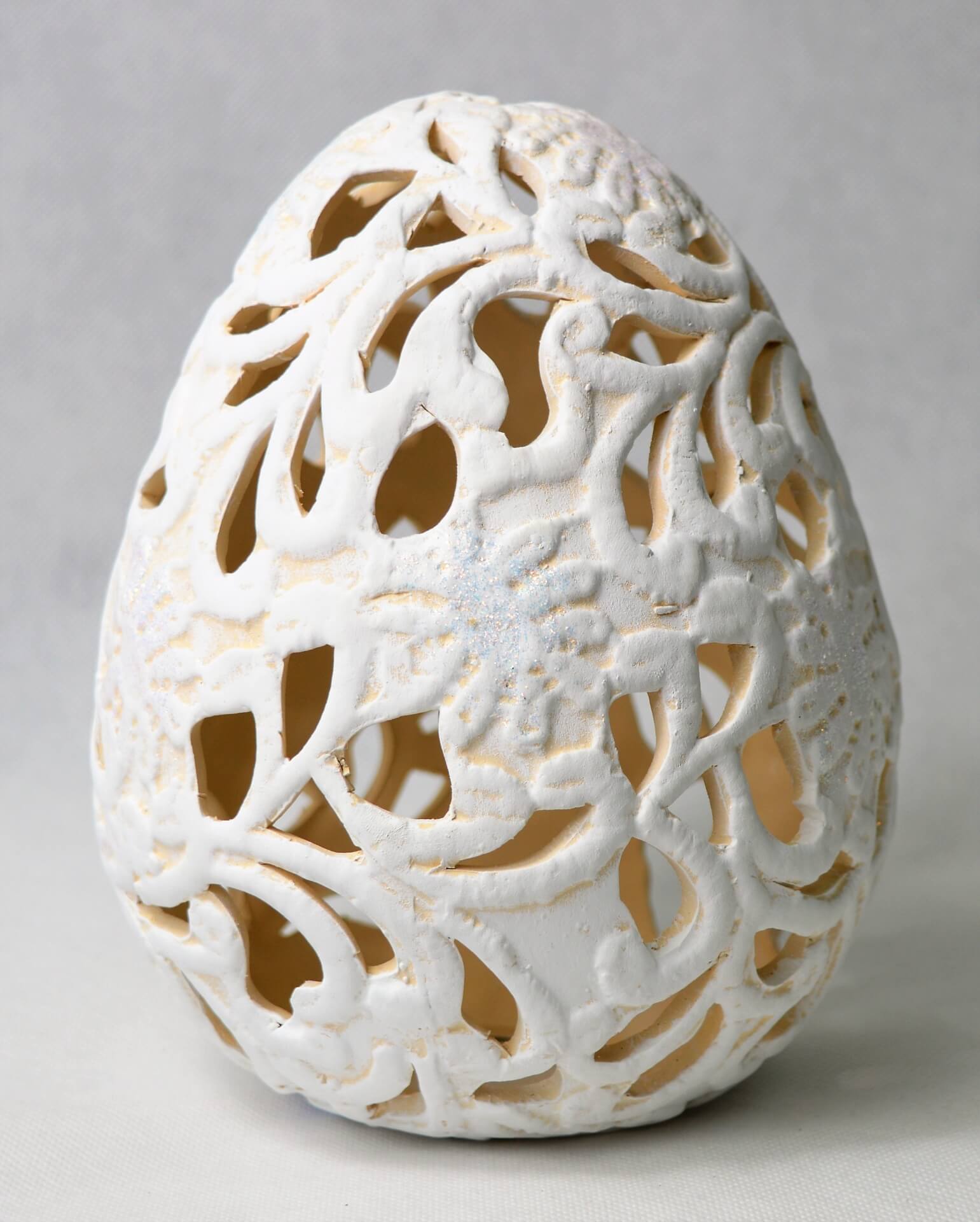Od dawien dawna jajko jest symbolem odradzającego się życia. Dekorowano jajka już w starożytności ,wierząc ,że obrzęd ten zapewni dostatek i długie życie.Nasze ażurowe jajko to niesamowicie piękna dekoracja wielkanocna . Wykonana bardzo starannie będzie pięknym dodatkiem w Państwa domach na wielkanocnym stole.Kolory mogą się nieznacznie różnić od przedstawionych na zdjęciu. Jajko posiada delikatne brokatowe zdobienia.