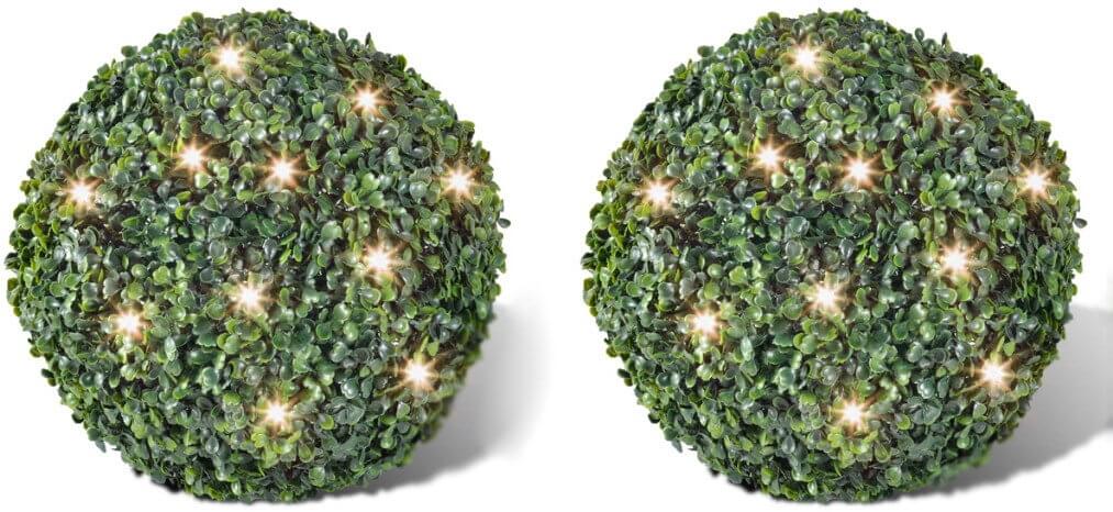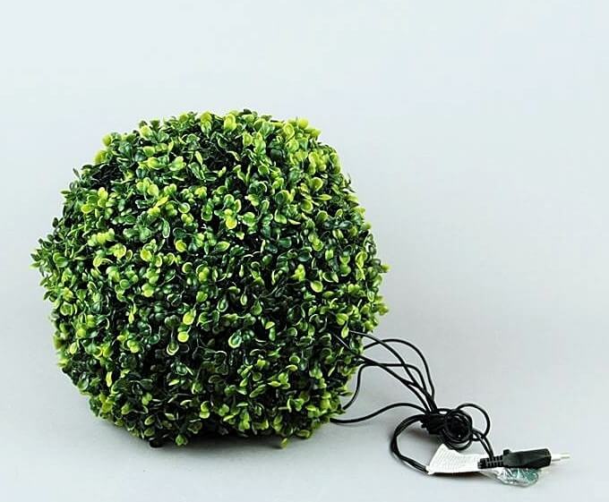 Kula bukszpanowa podświetlana lampkami. Tworzywo sztuczne. Kolor zielony. Kolor lampek ciepły biały. Podłączane do prądu.