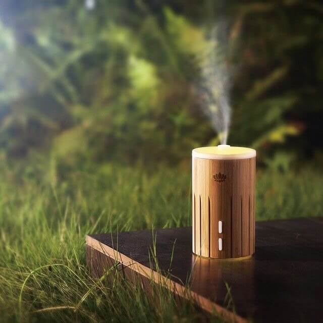 - Ultradźwiękowa lampa bambusowa zapachowa Esta madebyzen do aromaterapii z oświetleniem LED jonizuje i nawilża powietrze.