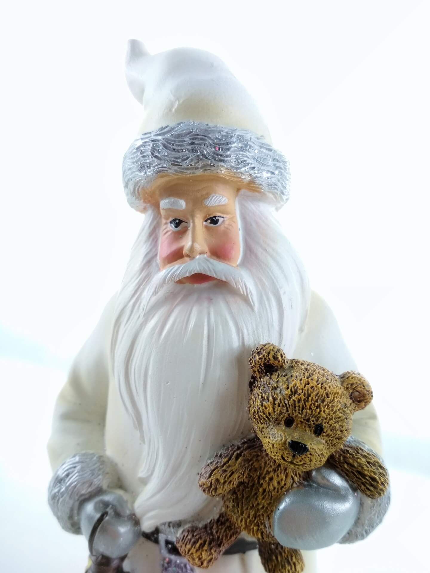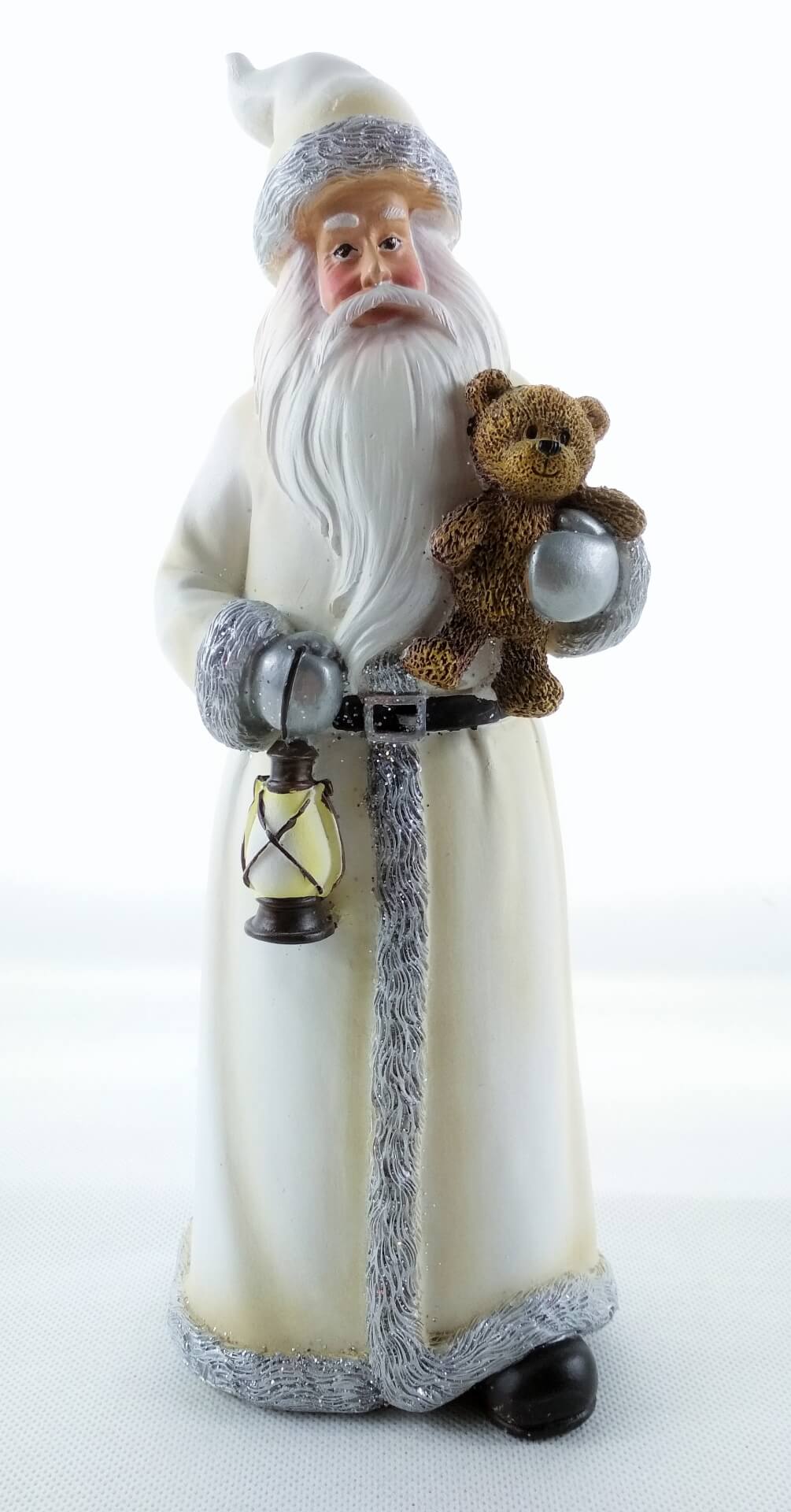 Ozdoby Bożonarodzeniowe , to najczęściej wybierane w sezonie zimowym dekoracje do domów oraz mieszkań .Ozdoby te nadają aranżacjom magii i umilają czas oczekiwania na Boże Narodzenie . W Państwa domach nie może zabraknąć Mikołaja z misiem. Figurka wykonana z tworzywa. Kolorystyka biało-kremowo-szaro-brązowa. Na płaszczu i czapce delikatnie przyprószona brokatem.