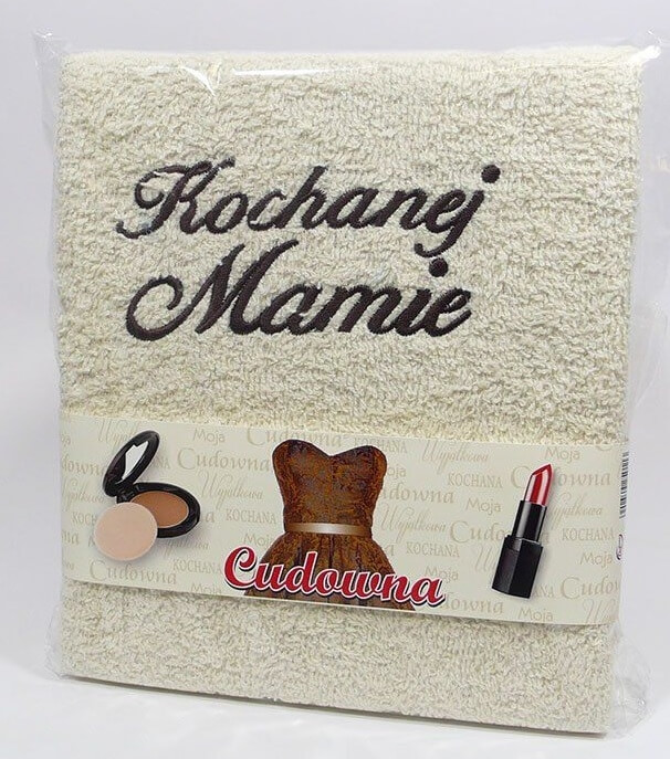 Ręcznik frotte o wymiarach 50 x 100cm w kolorze ecru. Wyhaftowany napis " Kochanej Mamie".