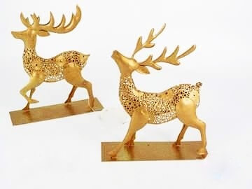 Renifer złoty jest wykonany z metalu. Głowa, rogi i nogi gładkie, natomiast korpus ażurowy. Został pomalowany na złoty kolor. Renifer jest ozdobnie obsypany złotym brokatem co nadaje mu niezwykłej elegancji.