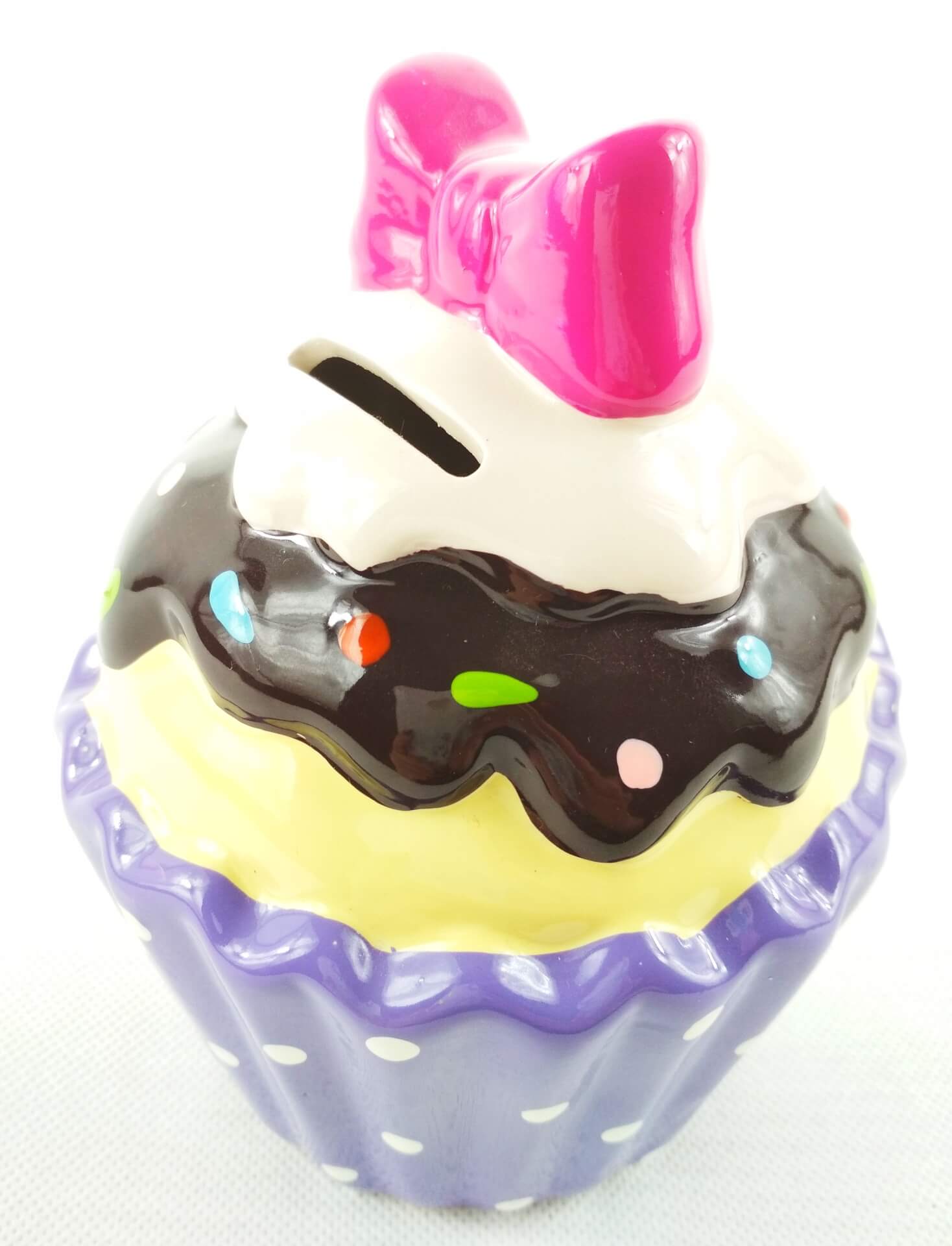Skarbonka ceramiczna w kształcie muffinki. Zamykana na kluczyk.