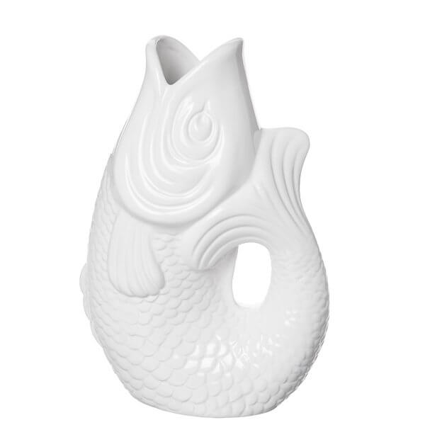 Ceramiczny wazon w kształcie ryby. Kolor biały.