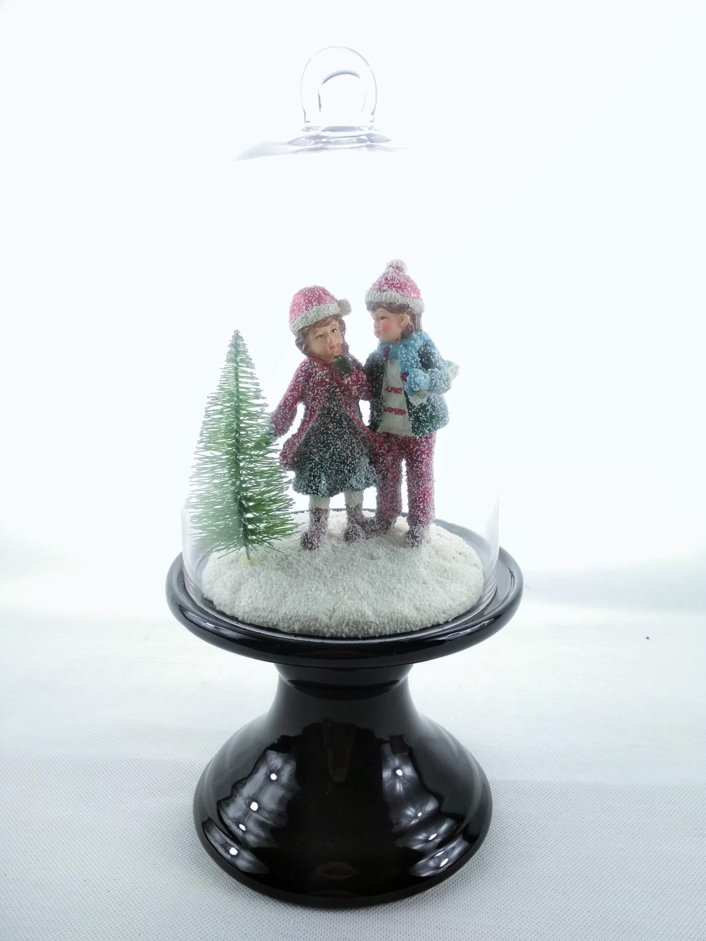 JEDNĄ Z TAKICH OZDÓB JEST NIEWĄTPLIWIE NASZA SCENKA POD SZKŁEM - PARA DZIECI PRZY CHOINCE UKRYTA POD SZKLANĄ KOPUŁĄ I POSTAWIONA NA CERAMICZNEJ KOLUMNIE.